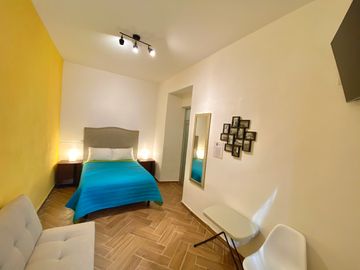 Habitacion con balcon y vista a la Increíble Universidad de Guanajuato. 1 Cama King Size y TV smart 4k de 43 pulgadas.